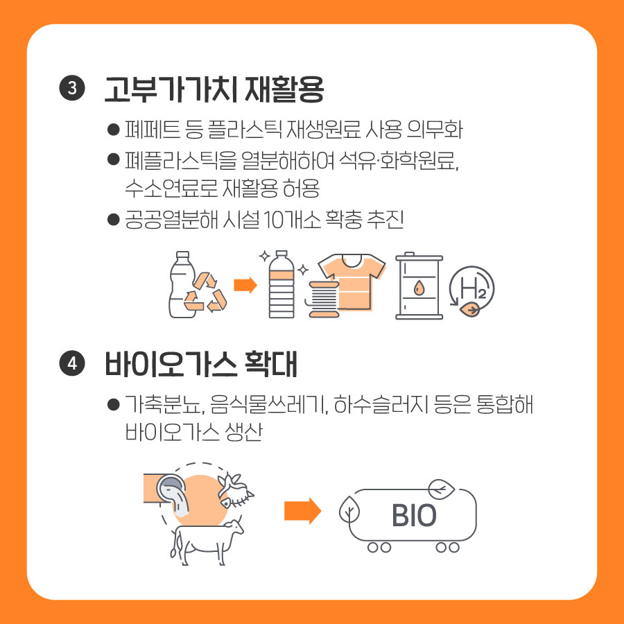환경부 국정과제 자료를 살펴보면 고부가가치 재활용의 내용으로 폐페트 등 플라스틱 재생원료 사용 의무화라고 적혀 있는 것으로 보아서 생분해 플라스틱의 사용 의무를 추진할 것으로 보이고 있습니다.