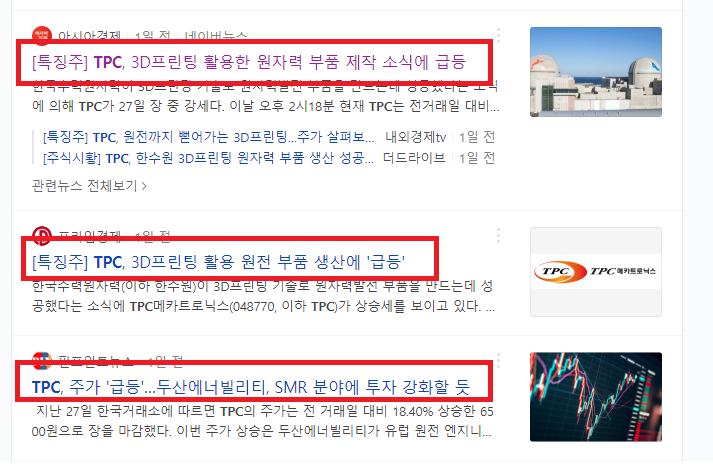 TPC는 최근 3D프린팅을 활용해서 원자력 부품 제작을 한다는 소식에 급등을 했다는 뉴스가 나왔습니다.