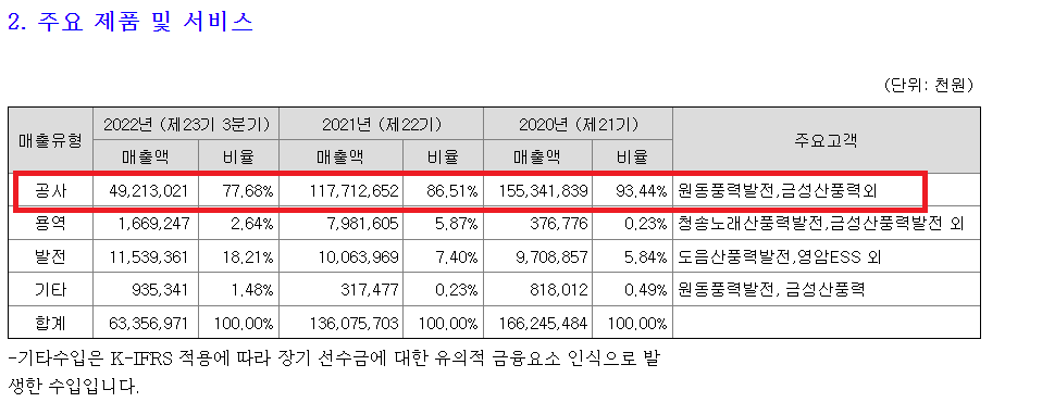 대명에너지는 토탈솔루션을 제공하면서 풍력발전소 공사매출이 대부분을 차지하고 있는 기업입니다. 현재 대명에너지 발전소만 전국에 17개소가 설치되어 있습니다.