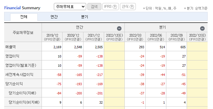 에스에너지 재무제표