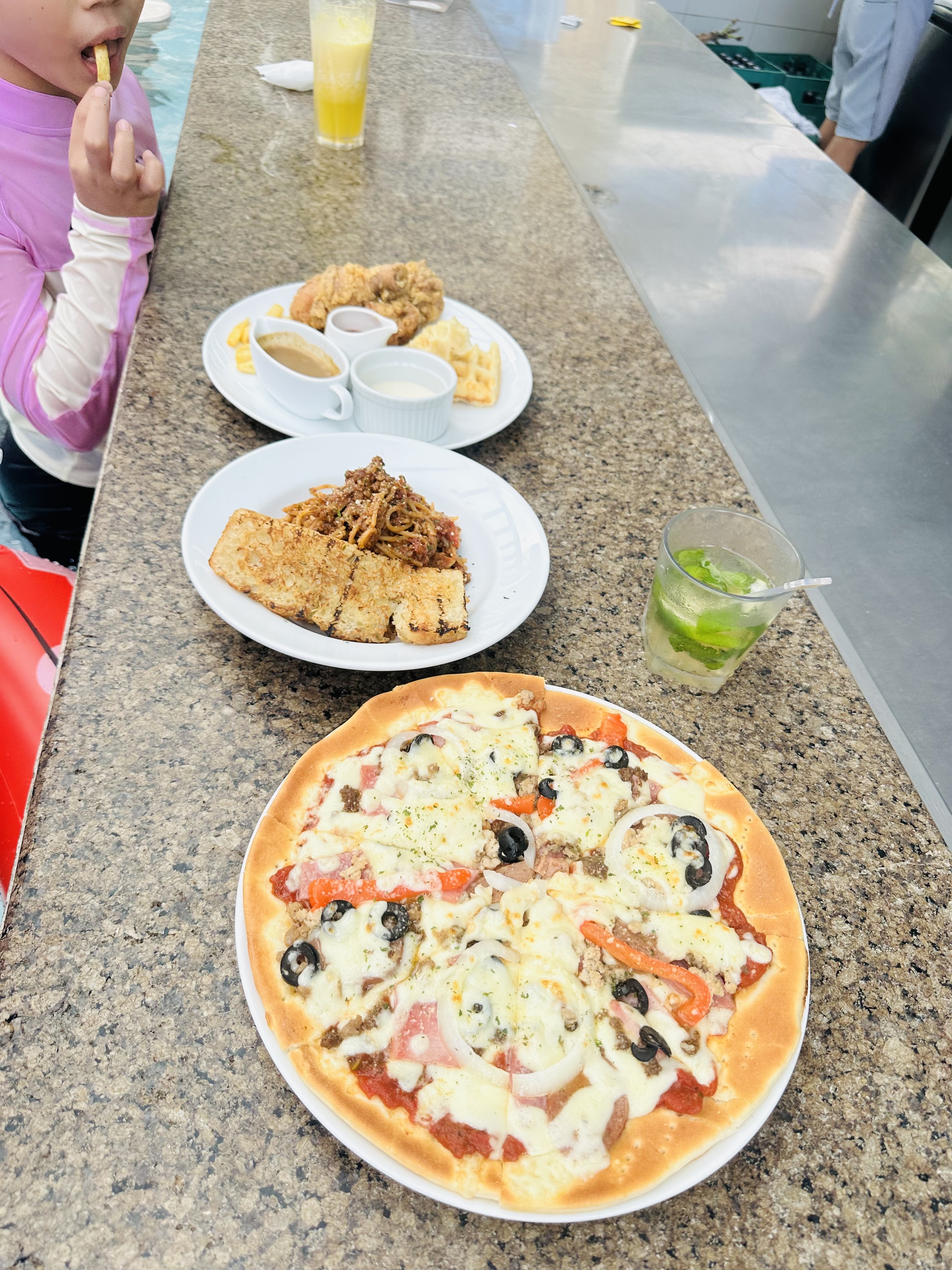 수영장 미니바에서 판매하는 음식이 생각보다 맛있었습니다. 수영하고 출출할 때 먹기 좋습니다.